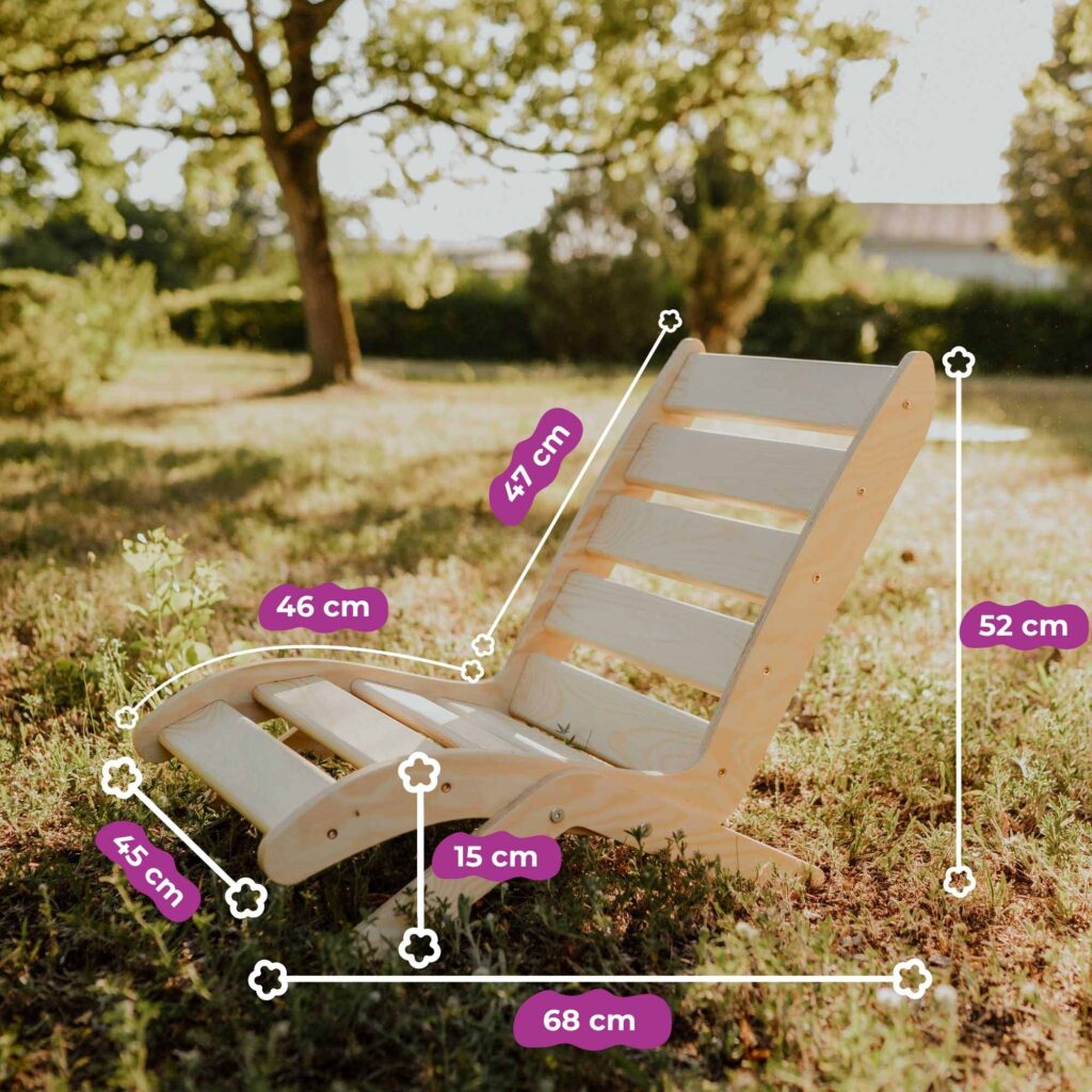 Drewniane krzesełko dziecięce Wood for Kids to wygodne i naturalne miejsce do siedzenia oraz wypoczynku w ogrodzie, na tarasie lub w domu. Zaprojektowane w stylu Montessori, wspiera samodzielność dziecka i zapewnia mu własną, komfortową przestrzeń do relaksu.